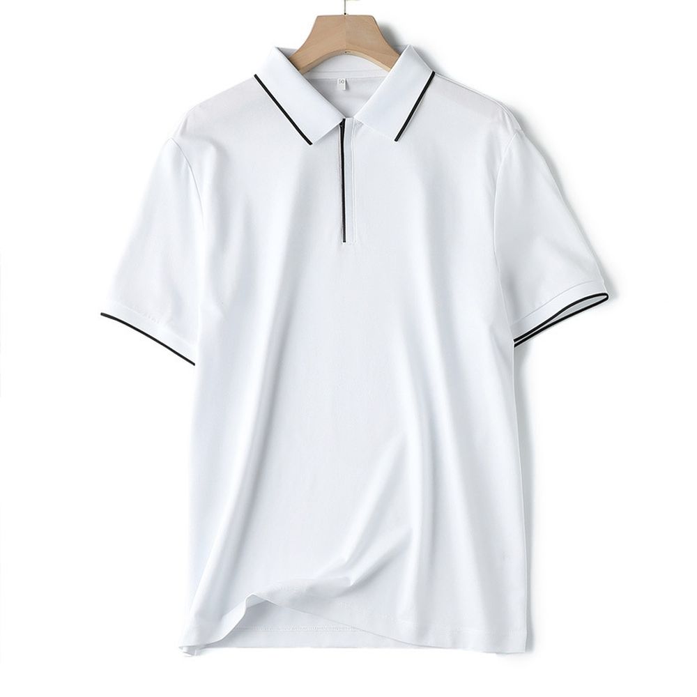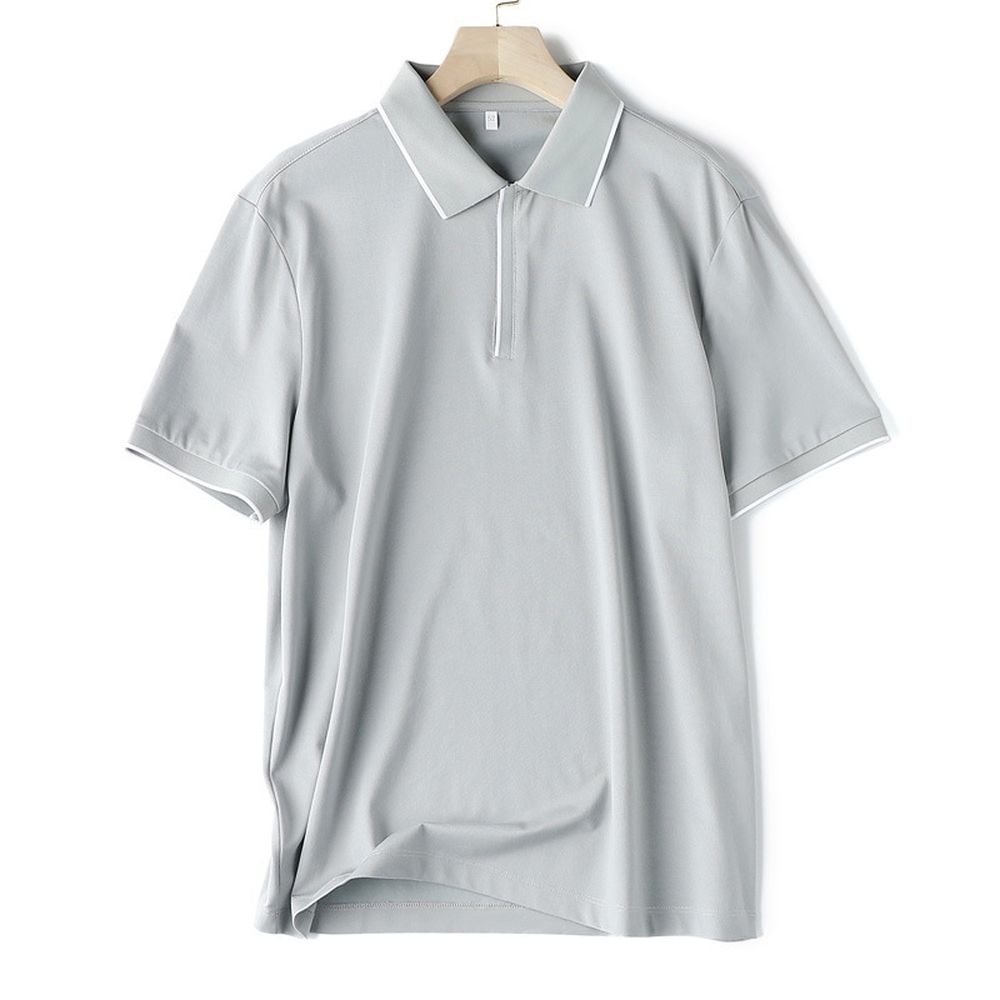 Men's Casual Zipper Neck Silk Polo Short-sleeved T-shirt
