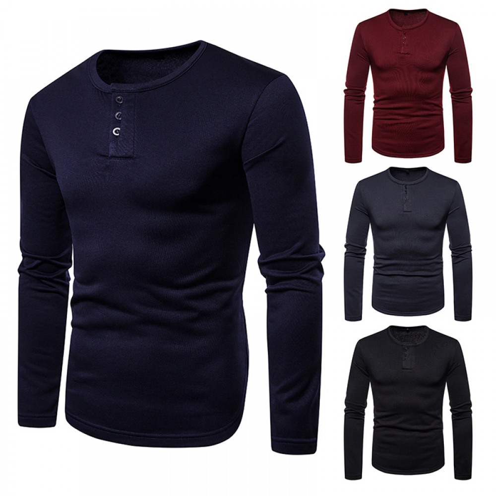 Men's Plus Size Plus Velvet Warm Henley Collar Long-Sleeved T-Shirt Bottoming Shirt
